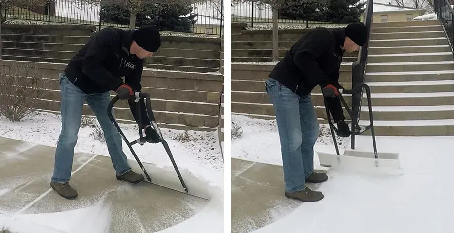 Tuck-Away Convenience: The flip-stick tucks up and out of the way when not needed, so it never hinders pushing, lifting, or back-dragging, giving you a versatile tool that adapts to long sidewalks or driveways without awkward handling.